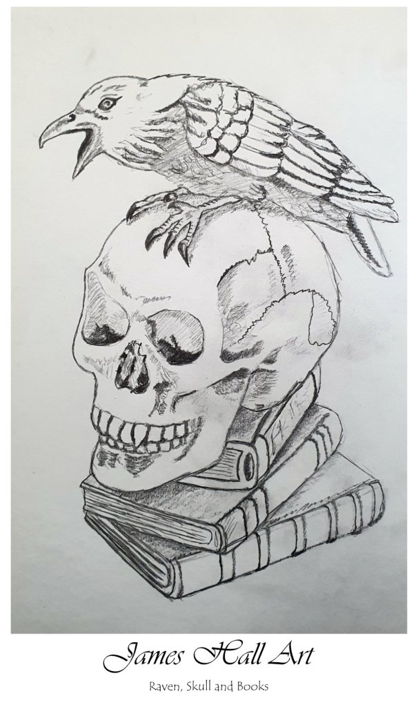Raven, Skull and Books – taken from a reference image of an ornament.