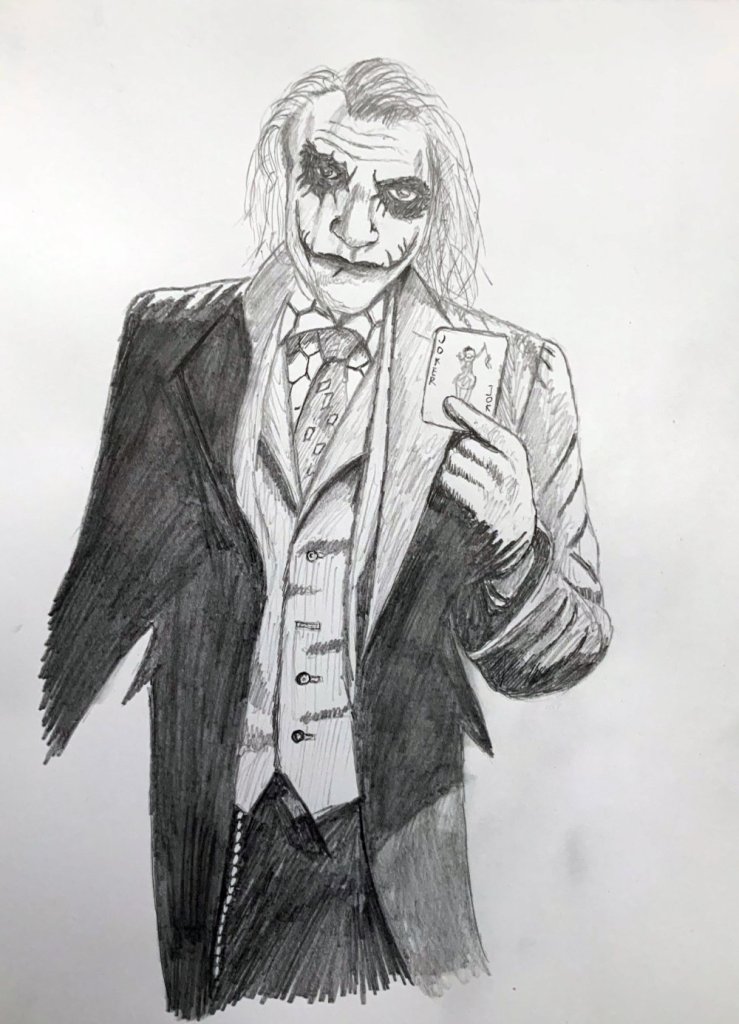 A sketch of Joker, I used a Heath Ledger reference, but to be honest, it kind of looks a little more like Joaquin Phoenix’s Joker.