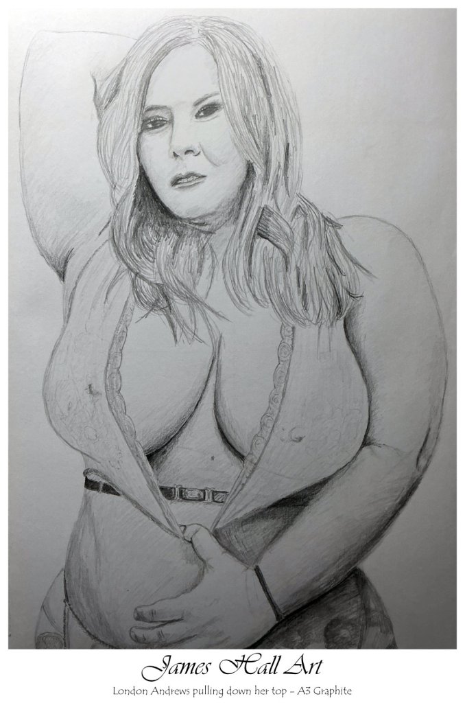 London Andrews drawing of a photoshoot for Curvy Girl Magazine 2018, A3 Graphite.
